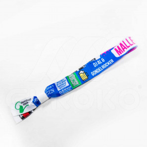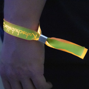 Festivalbandjes Neon geweven in 20mm, zodat de afbeelding zeker zichtbaar is. Dankzij de breedte zijn ook de kleinste details leesbaar. Het festivalbandje kan zelfs met 8 kleuren geweven worden en h...Op voorraad